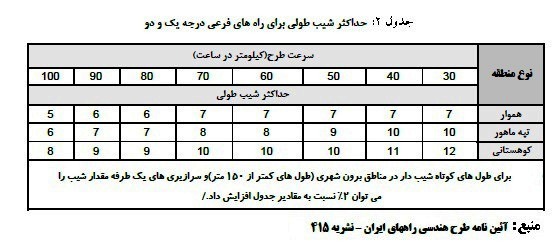 5 | حد اکثر شیب مسیر (%) | 10.6 | 8.4 | 10 | 10 |